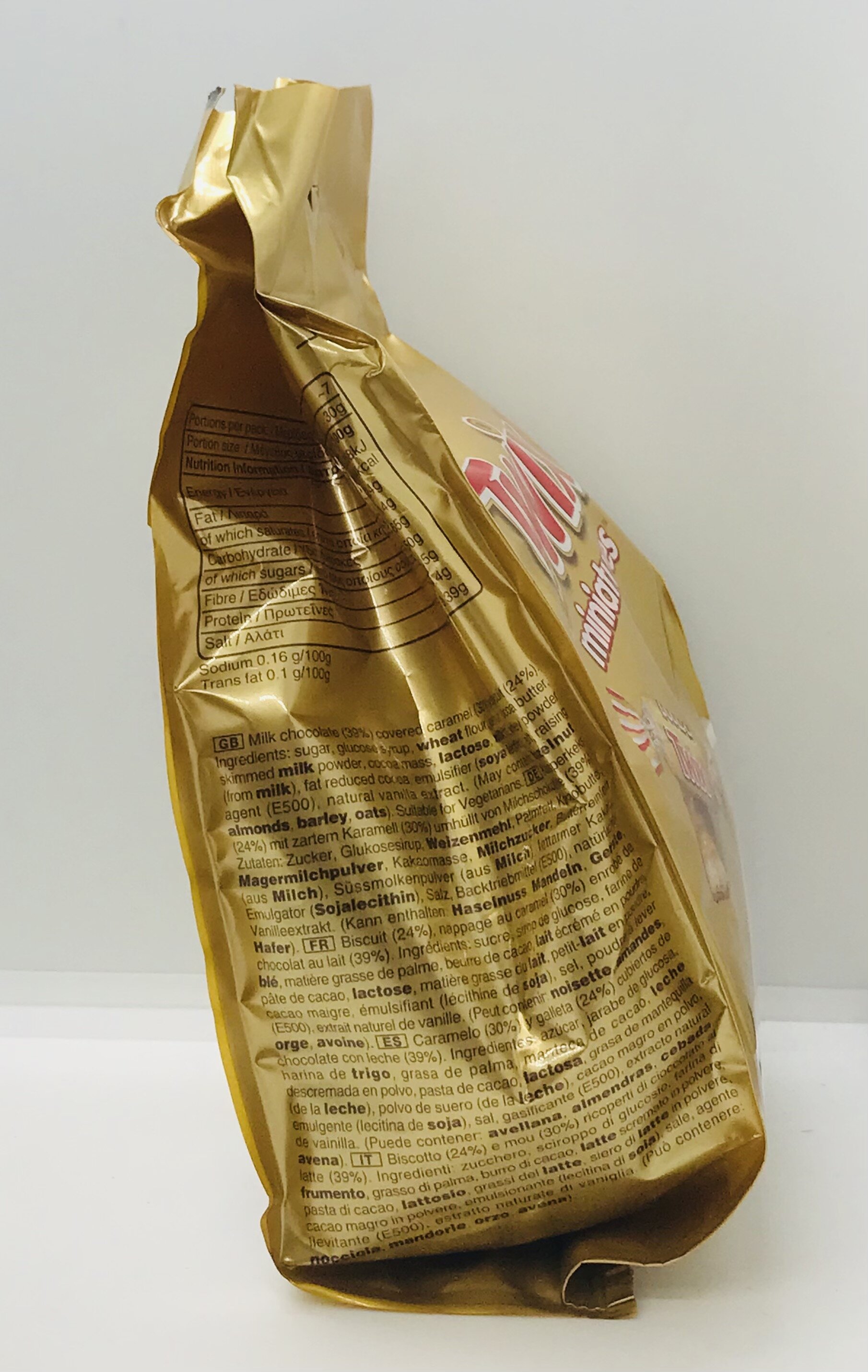 Sugar, glucose syrup, wheat flour, palm fat, cocoa butter, skimmed milk powder, cocoa mass, lactose, milk fat, whey powder from milk), fat reduced cocoa, emulsifier (soya lecithin), salt, raising gent (E500), natural vanilla extract.