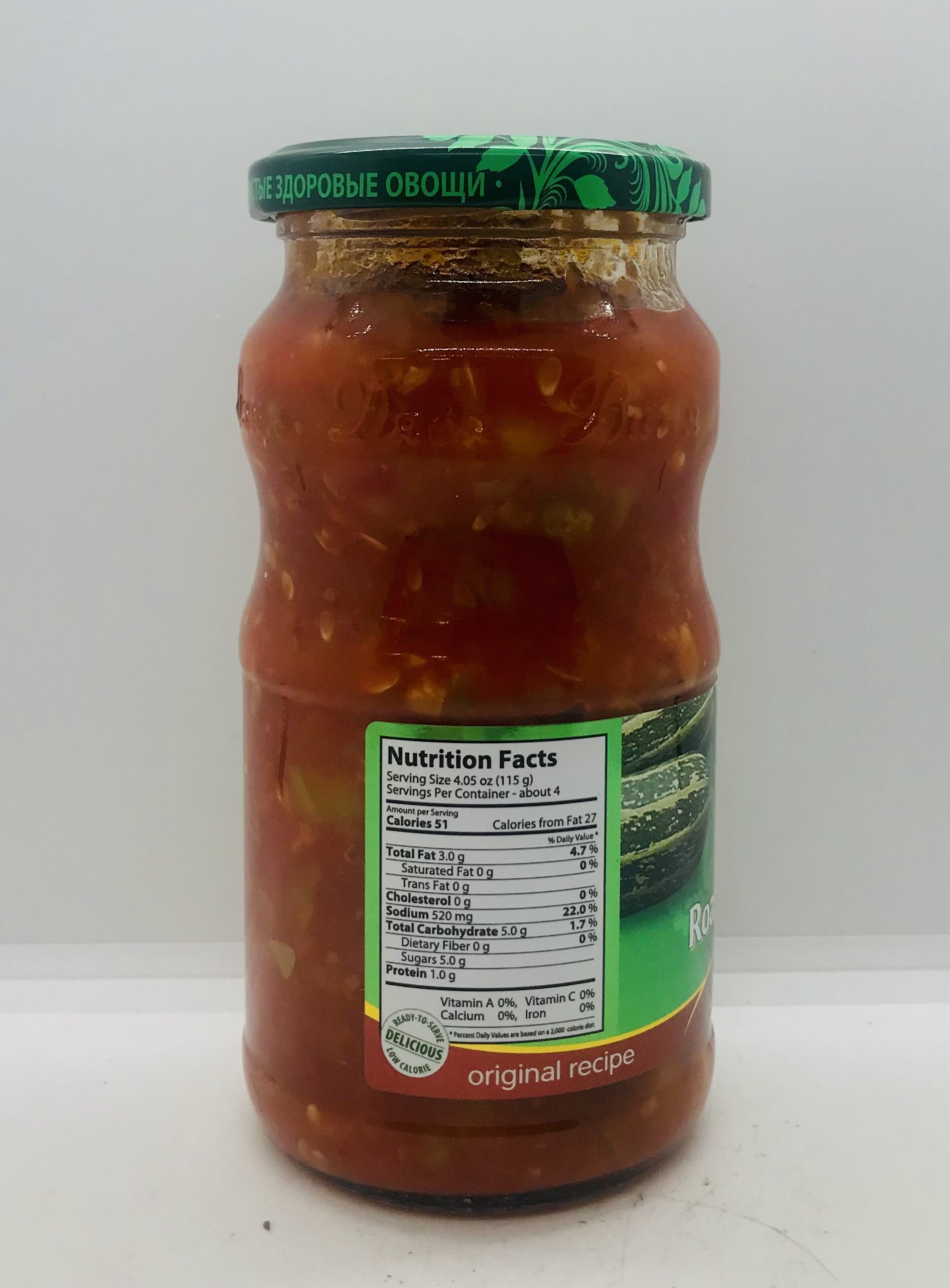 Fried squash, sweet pepper, tomato paste, sugar, sunflower oil, salt, garlic, ground red pepper, acidity regulator: acetic acid.