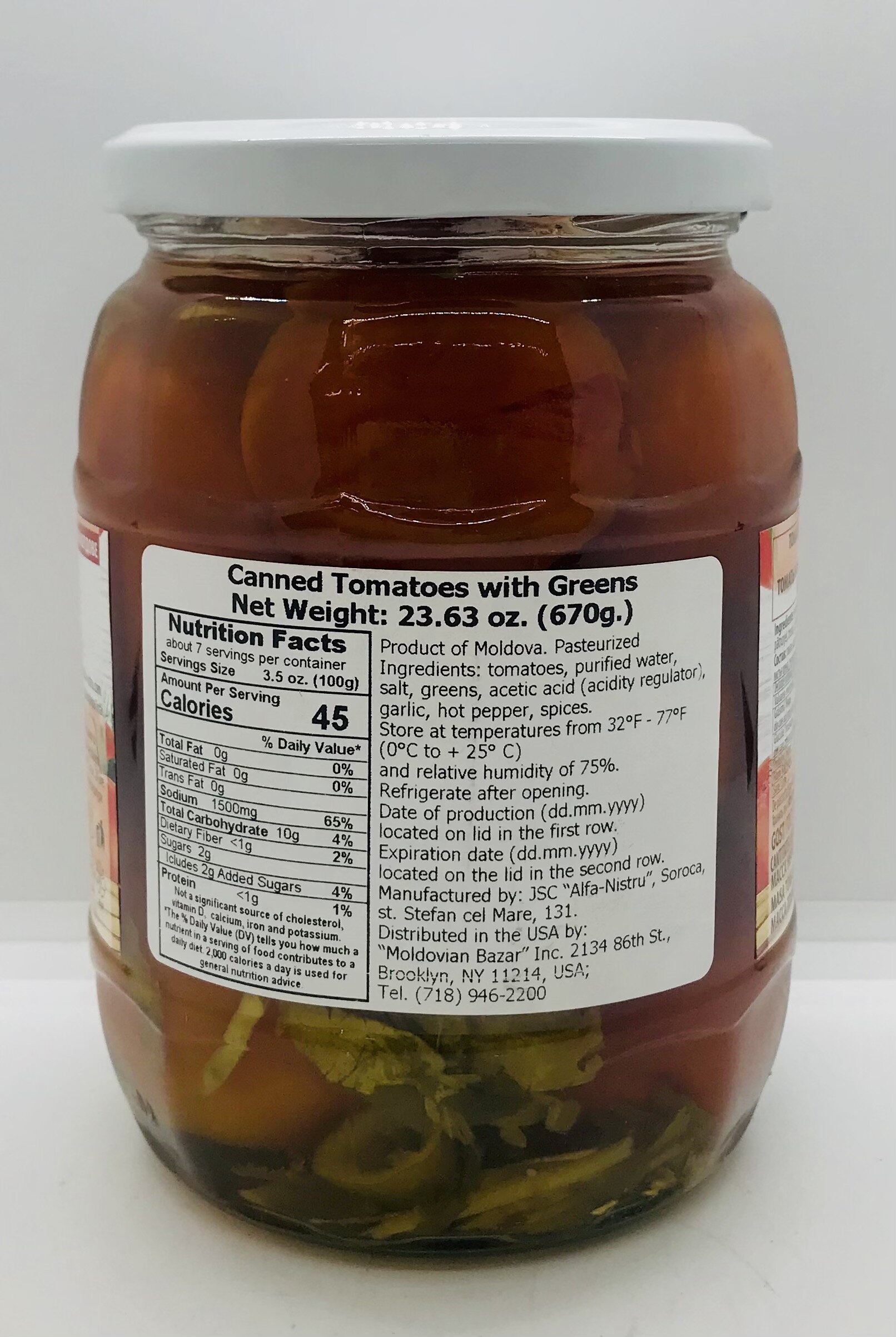Tomatoes, purified water, salt, greens, acetic acid, garlic, hot pepper, spices.