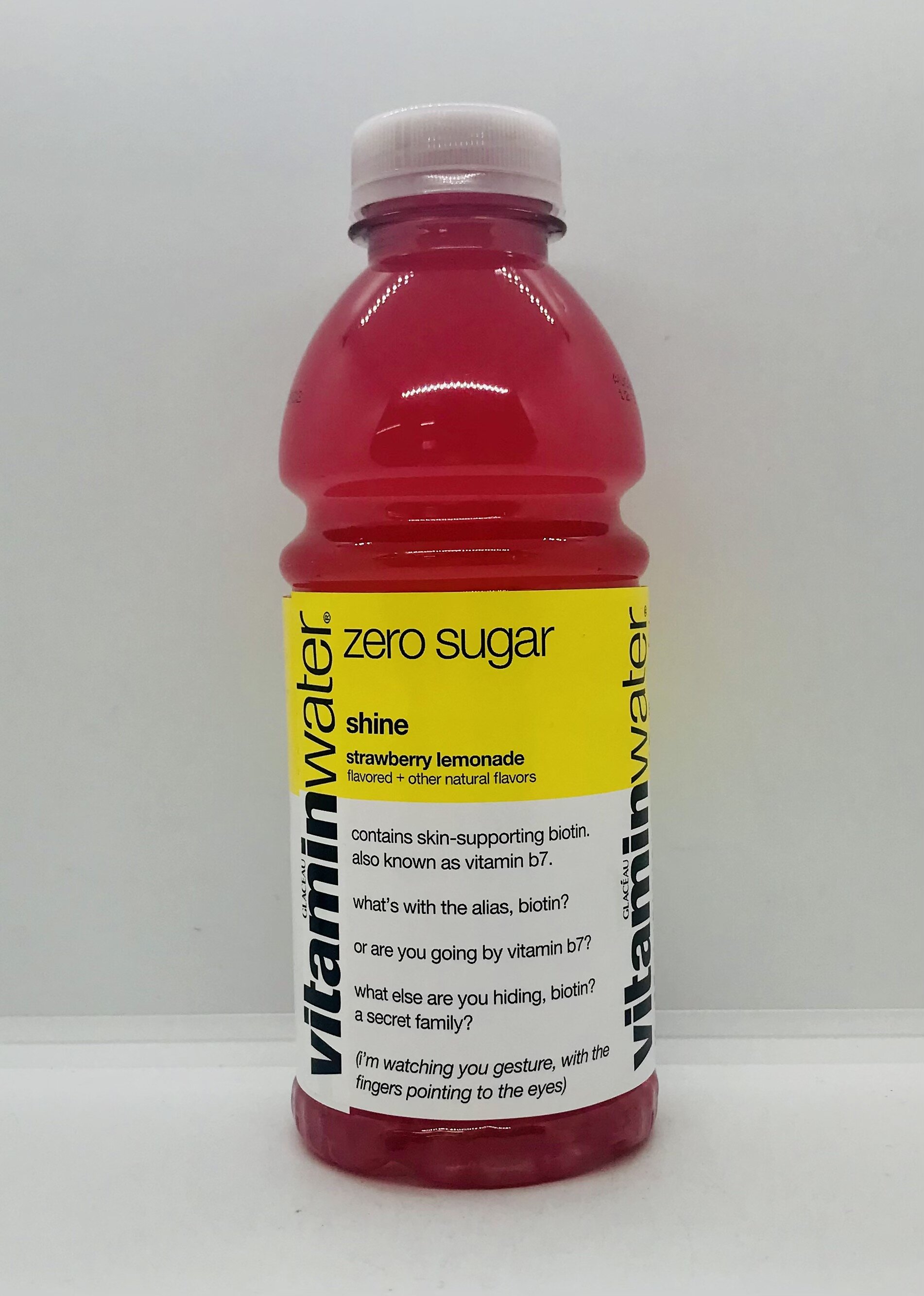 Reverse osmosis water, erythritol, less than 0.5% of: vitamins C, B5, B6, B12, and E (ascorbic acid, calcium pantothenate, pyridoxine hydrochloride, cyanocobalamin, and alpha-tocopherol acetate), electrolytes (magnesium and calcium lactates, and potassium phosphate), stevia leaf extract, citric acid, acacia gum, glycerol ester of rosin, natural flavors, fruit and vegetable juices (color).