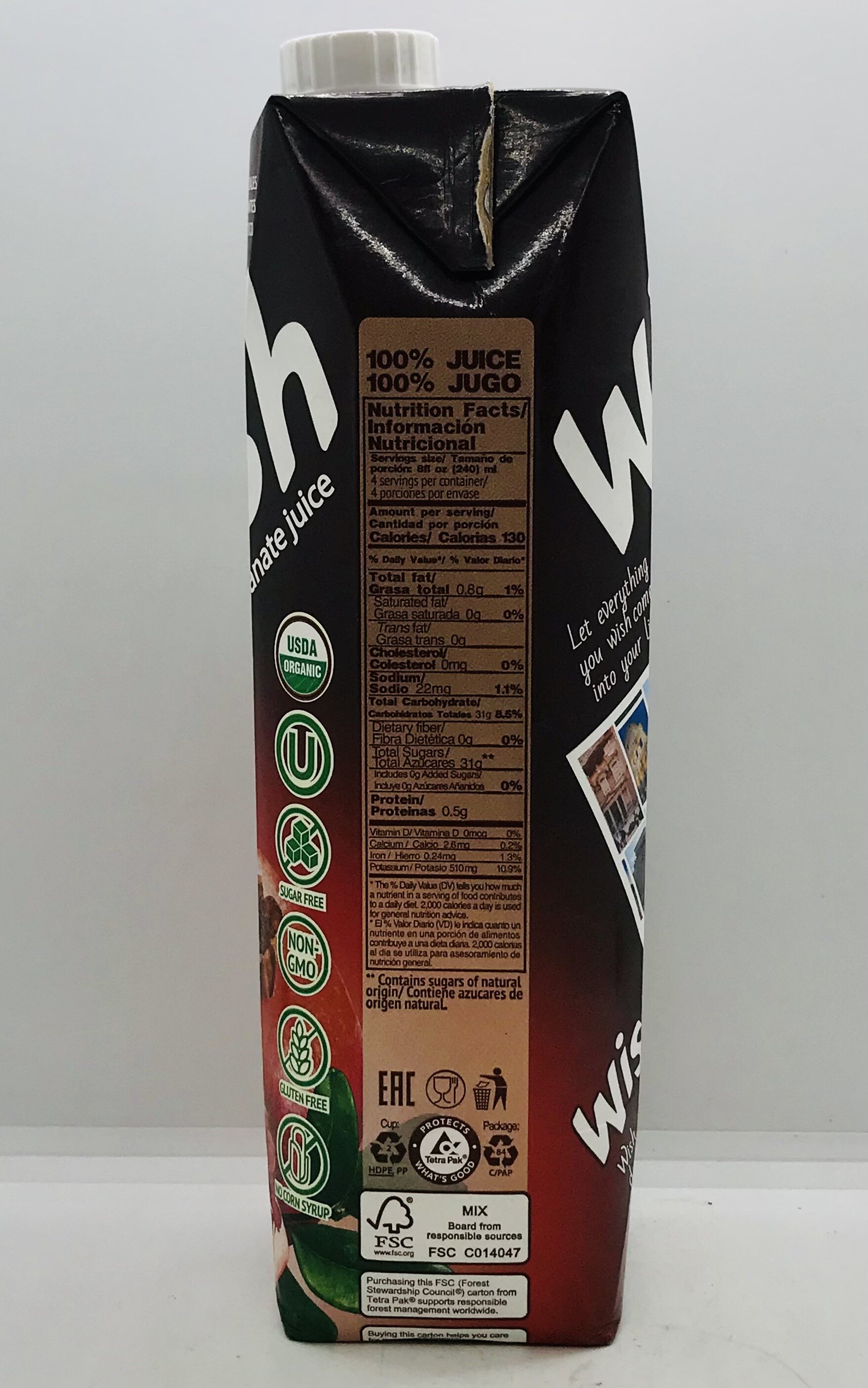 Organic pomegranate juice concentrate, natural pomegranate flavor, water.