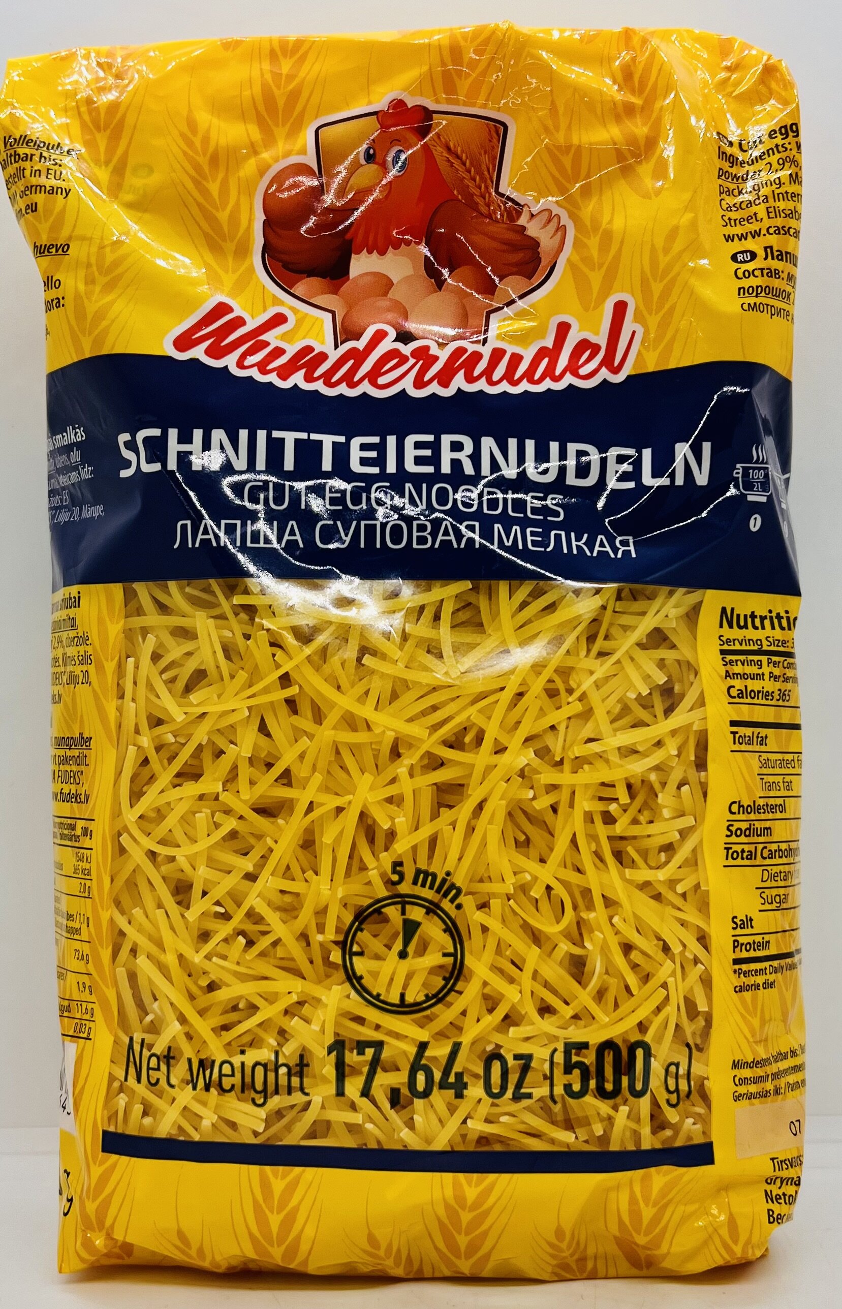 Wheat flour, water, egg powder 2.9%, turmeric.
