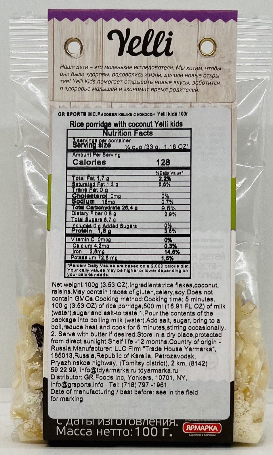 Rice flakes, coconut, raisins.