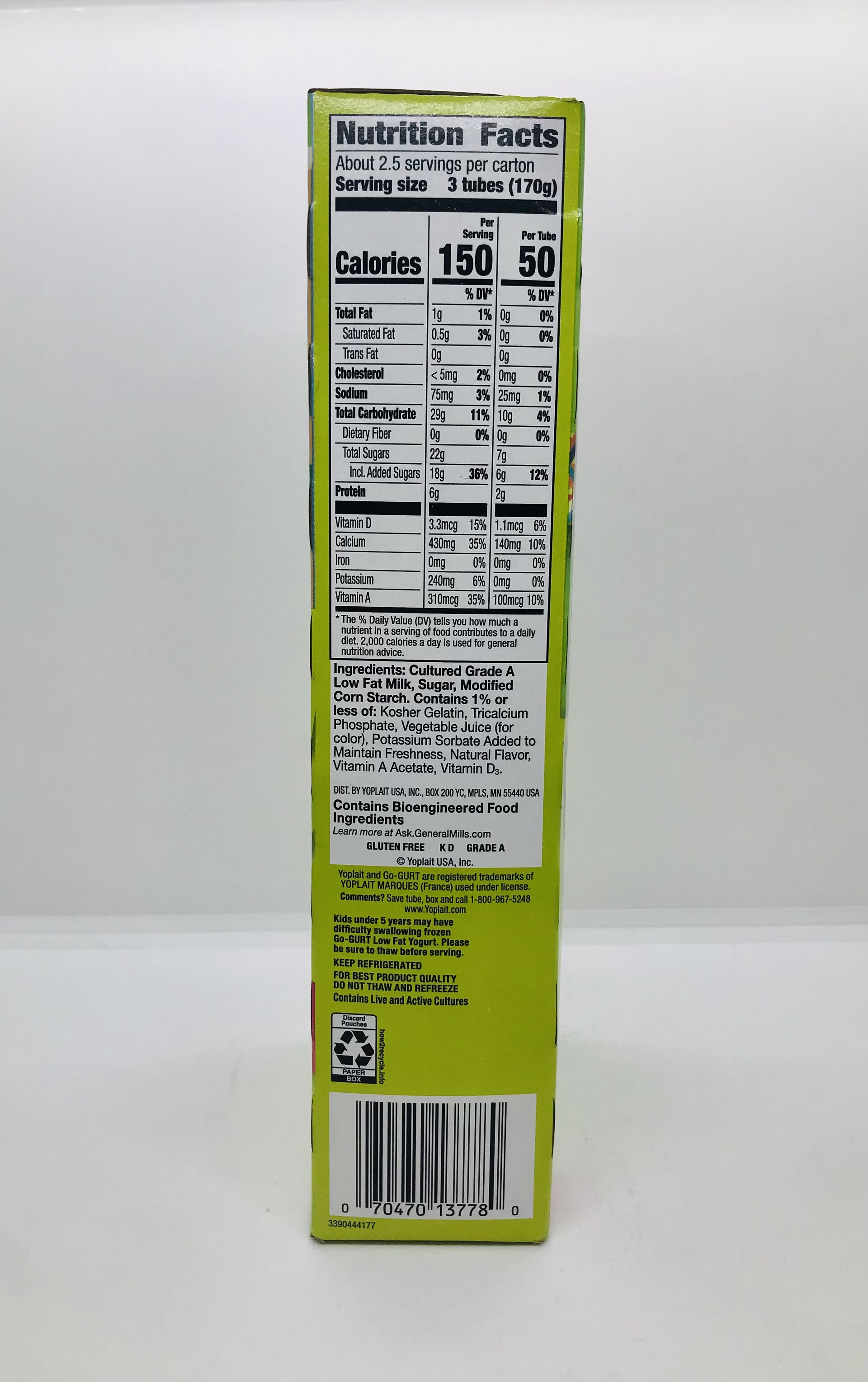 Cultured grade A low fat milk, sugar, modified corn starch. Contains 1% or less of: kosher gelatin, tricalcium phosphate, vegetable juice, potassium sorbate added to maintain freshness, natural flavor, vitamin A acetate, vitamin D3.