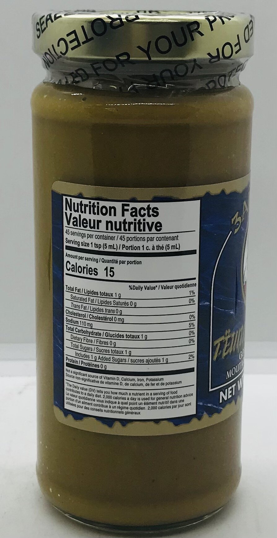 water, mustard flour, sugar, salt, canola oil, citric acid, turmeric, artificial flour, caramel color.