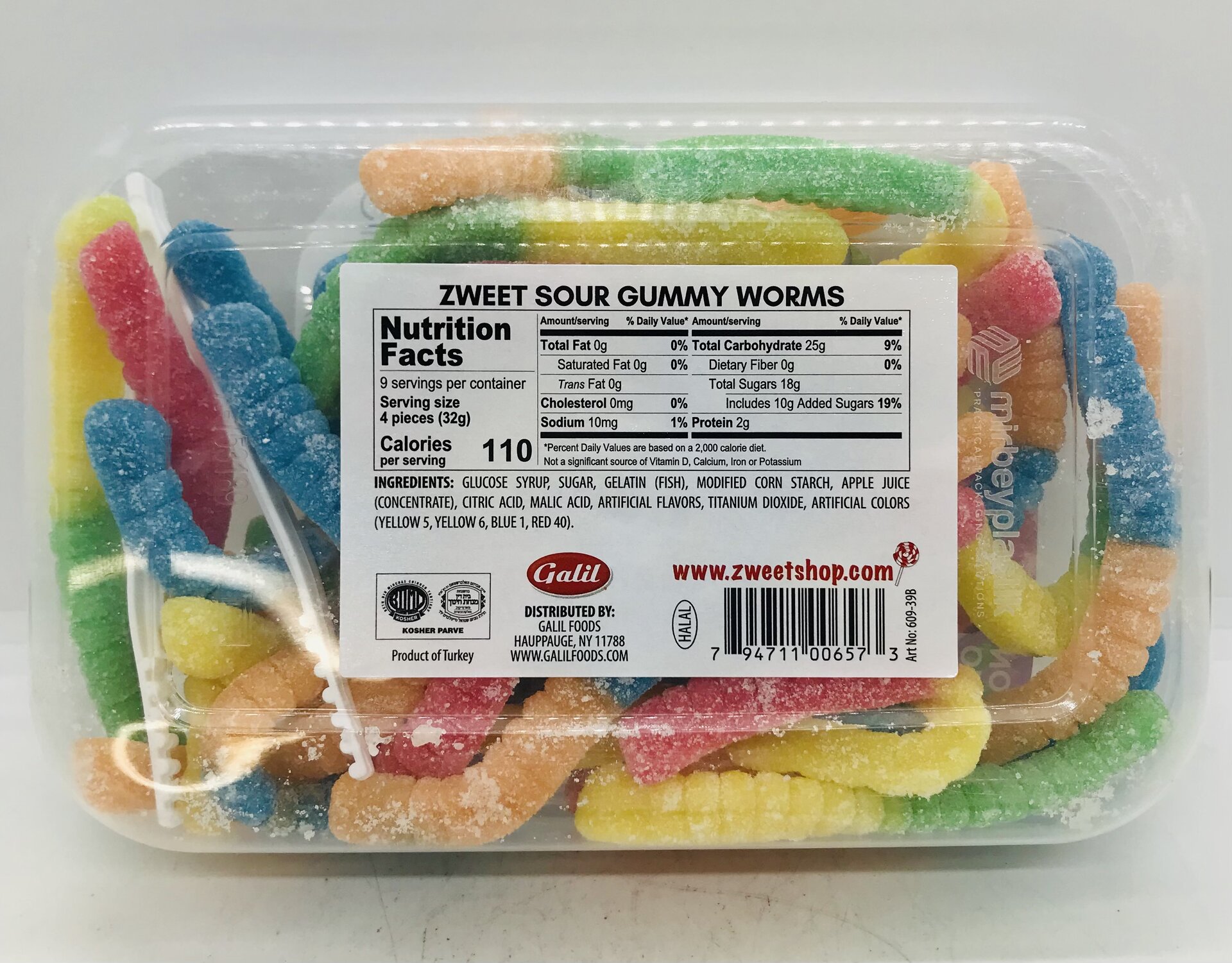 GLUCOSE SYRUP, SUGAR, GELATIN (FISH), MODIFIED CORN STARCH, APPLE JUICE (CONCENTRATE), CITRIC ACID, MALIC ACID, ARTIFICIAL FLAVORS, TITANIUM DIOXIDE, ARTIFICIAL COLORS (YELLOW 5, YELLOW 6, BLUE 1, RED 40).